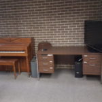 piano, desk, LED TV, CD copier