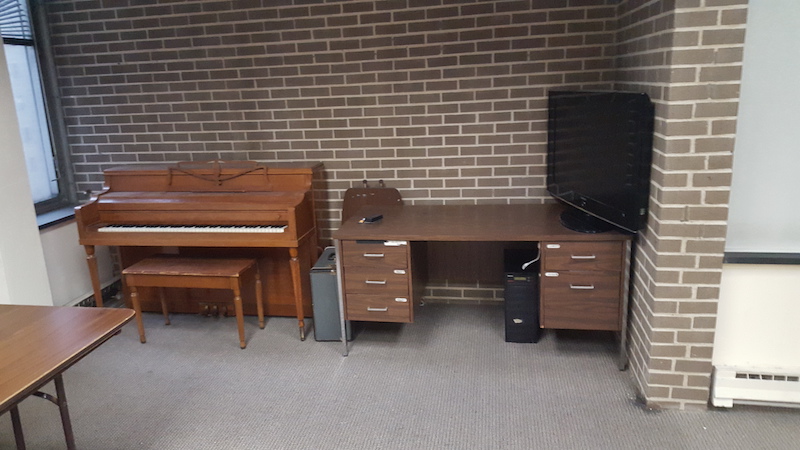 - (first floor) pull-down projector screen